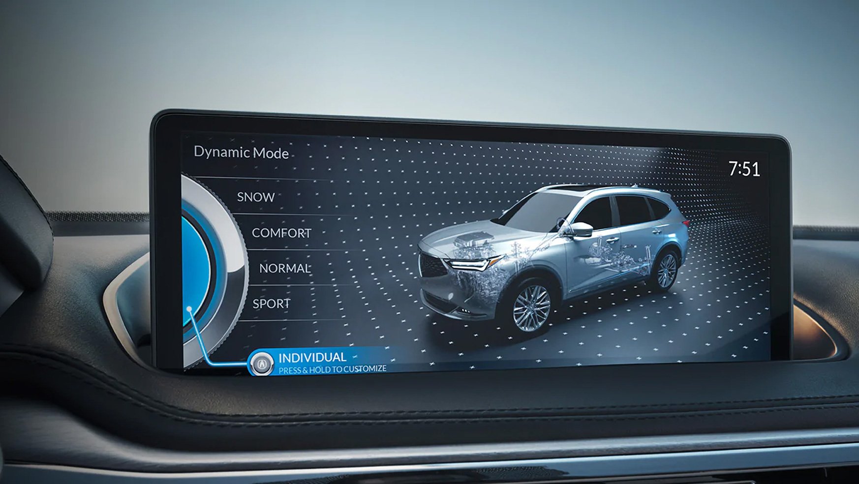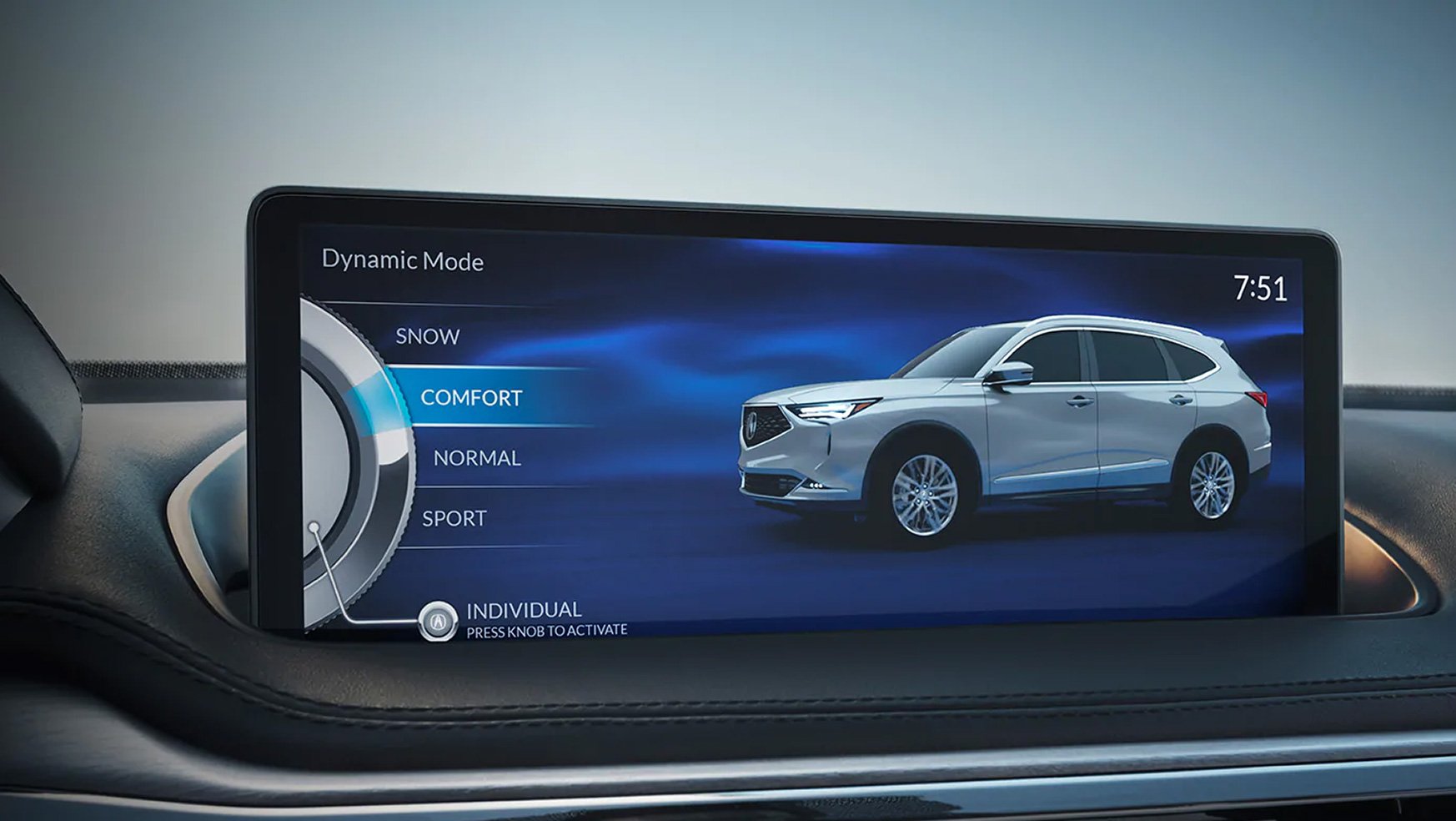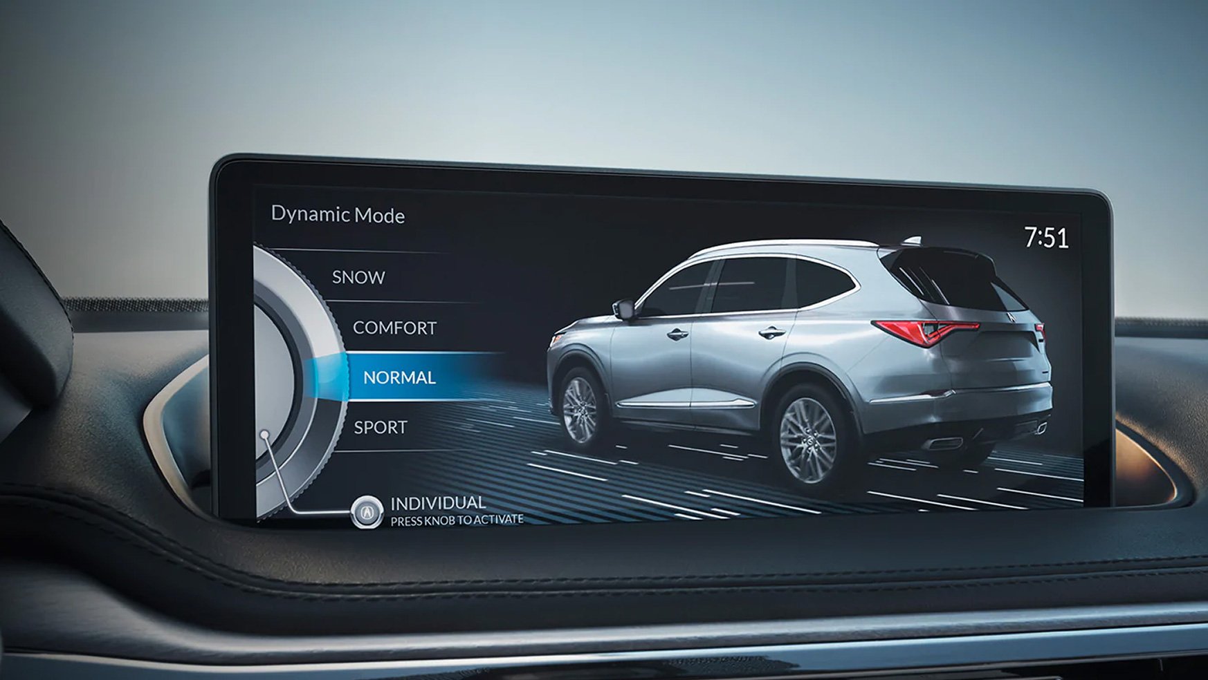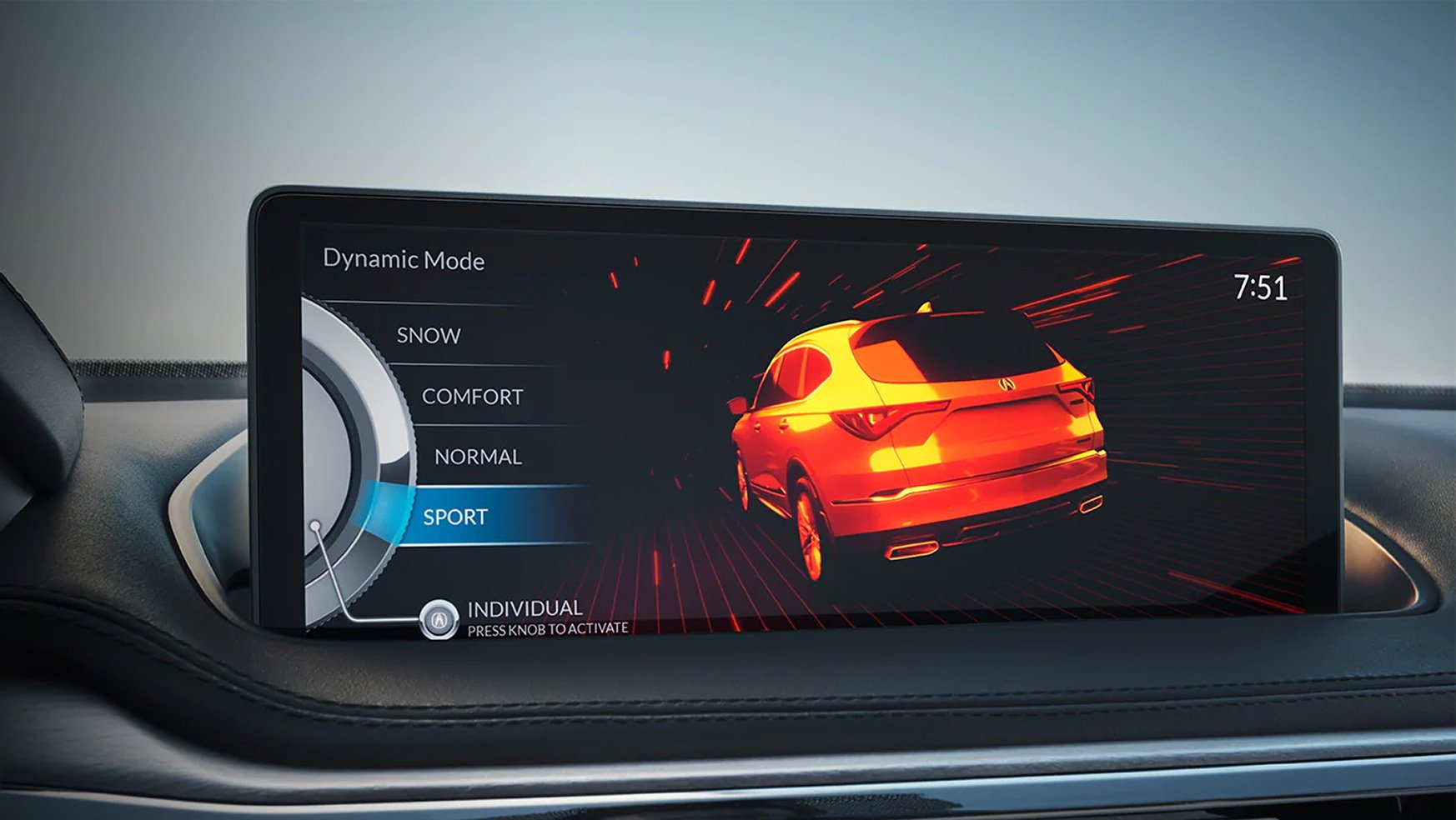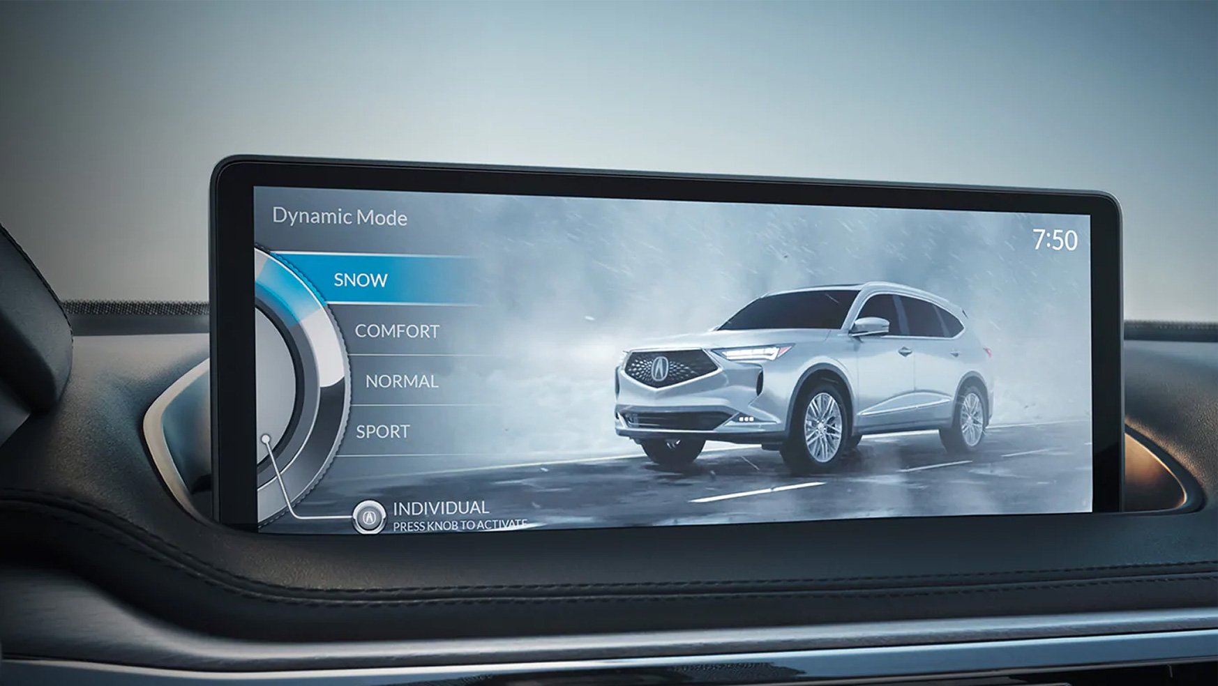 Despliegue todo el rendimiento de la MDX en el modo Sport. Experimente un sonido de motor más deportivo y una mayor respuesta de la dirección y control vectorial con el sistema Super Handling All-Wheel Drive™ disponible.