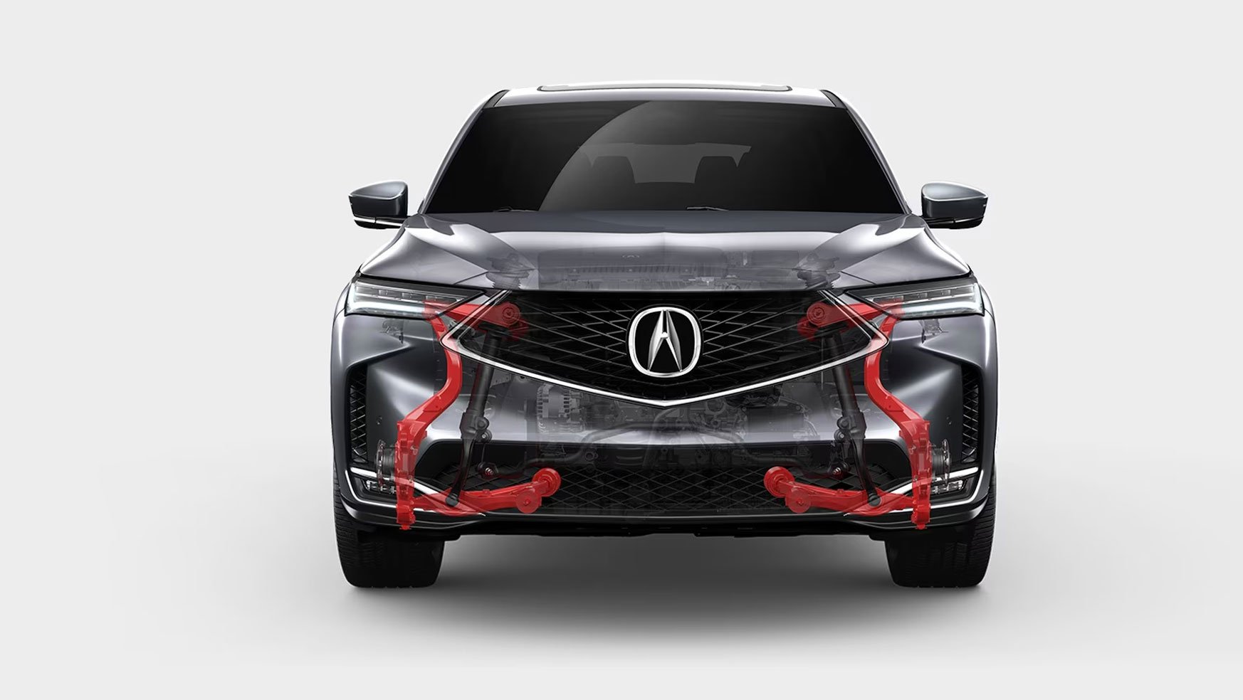 Las luces delanteras de LED Jewel Eye y las luces traseras de LED Chicane ahumadas iluminan el estilo esculpido de la MDX. El haz de luz tridimensional de las luces traseras Chicane añade una profundidad espectacular al moderno diseño de precisión del exterior.